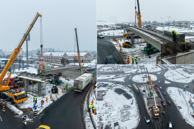 Lucrările la pasajul suprateran „Metro”, pe Centura Oradea (DN1, intersecția cu Centura Oșorhei), au intrat în faza montării grinzilor: primul transport şi amplasare au început pe 15 ianuarie 2026. Până la sfârşitul săptămânii viitoare vor fi montate toate cele 25 de grinzi, iar stadiul fizic comunicat este de 65%.